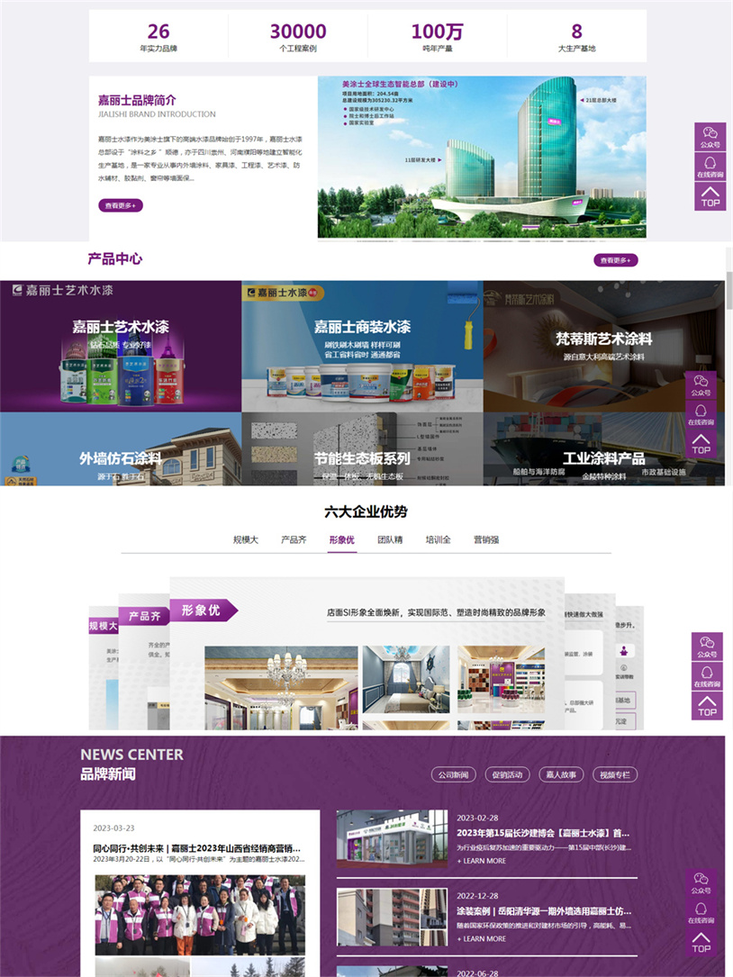隨著市場需求的不斷升級及企業(yè)的逐步發(fā)展與壯大,為了匹配企業(yè)發(fā)展的戰(zhàn)略定位,更好地傳達企業(yè)理念與提升用戶體驗,嘉麗士水漆對官方網(wǎng)站進行了全面的改版升級。經(jīng)過數(shù)月的謀劃籌備,全新的頁面設計,豐富的內容展示,更舒心、更便捷的訪問體驗,有“顏值”更有“內涵”的官方網(wǎng)站上線啦!