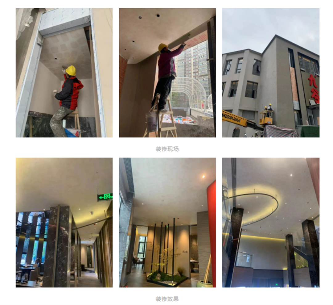 在經(jīng)過(guò)與項(xiàng)目承包方的詳細(xì)溝通后,嘉麗士根據(jù)建筑結(jié)構(gòu)和工期要求,采用內(nèi)外墻微水泥、外墻真石漆、頂面藝術(shù)漆產(chǎn)品組合,為九谷興川菜館量身打造了內(nèi)外墻涂裝翻新解決方案。