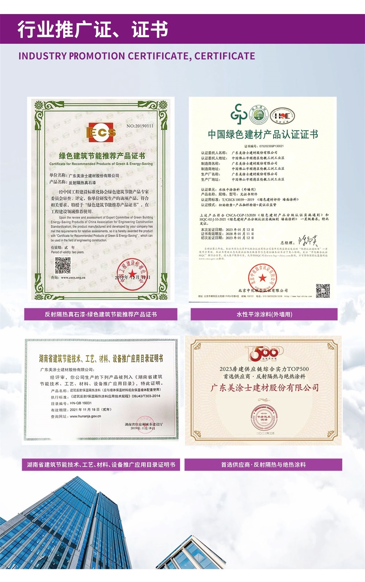 (1)涂層能夠反射太陽光和紅外線,保證建筑物墻體溫度不至于過高;