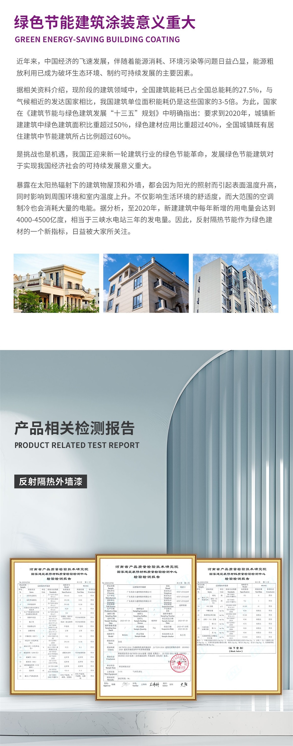 (1)涂層能夠反射紅外線能量,對建筑物起到反射隔熱的效果,能夠明顯降低建筑能耗。