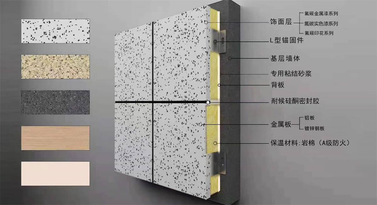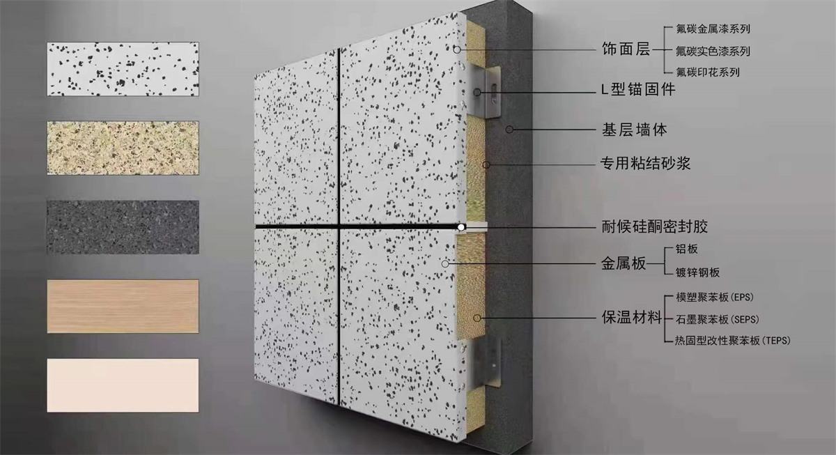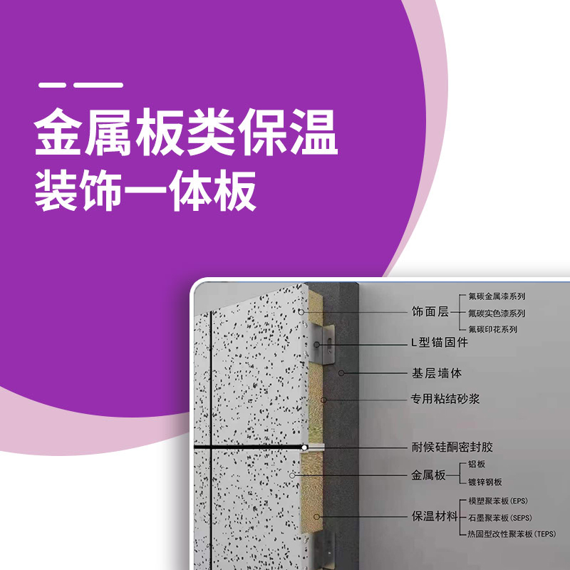 金屬板類保溫裝飾一體板是由鋁板或鍍鋅鋼板作為載體層,與保溫材料復合而成的集節(jié)能、裝飾為一體的裝飾板。